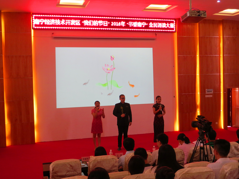 據(jù)了解,為大力培育和踐行社會(huì)主義核心價(jià)觀,傳承中華傳統(tǒng)節(jié)日和中華傳統(tǒng)國學(xué)文化,倡導(dǎo)全民閱讀,南寧市已連續(xù)多年舉辦“書香綠城”系列讀書活動(dòng)和經(jīng)典誦讀活動(dòng)。接到經(jīng)開區(qū)開展比賽的通知后,集團(tuán)領(lǐng)導(dǎo)高度重視,把該活動(dòng)作為推動(dòng)企業(yè)文化建設(shè)的一個(gè)有利契機(jī),積極組織人員參賽。集團(tuán)領(lǐng)導(dǎo)親自帶隊(duì),精心挑選了參賽作品,利用節(jié)假日的休息時(shí)間,加班加點(diǎn)進(jìn)行排演,逐字逐句地調(diào)整校正發(fā)音。為豐富表演形式,還讓集團(tuán)擅長制作PPT的職工結(jié)合誦讀的內(nèi)容制作了動(dòng)態(tài)PPT,使表演更精彩。
