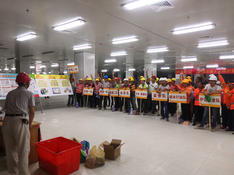 影片播放結(jié)束后,緊接著開展的是安全生產(chǎn)知識(shí)競賽活動(dòng)。參與競賽的人員根據(jù)不同工種、不同部門分成9支隊(duì)伍。競賽內(nèi)容包括安全生產(chǎn)法律法規(guī)、應(yīng)急救援、消防、減災(zāi)防災(zāi)、勞動(dòng)保護(hù)等多方面知識(shí),競賽形式為舉手搶答。競賽過程中,9支代表隊(duì)你追我趕,毫不示弱,戰(zhàn)況十分激烈。選手們的活躍表現(xiàn)不時(shí)引來陣陣掌聲和歡笑聲,即使中途突發(fā)工地停電狀況,也未能澆滅大家的熱情,比賽在高漲的氣氛中繼續(xù)進(jìn)行。此次競賽以寓教于樂的形式對(duì)管理人員和一線施工人員進(jìn)行安全知識(shí)普及,除進(jìn)一步提高其安全防范意識(shí)和應(yīng)對(duì)事故的處理能力,還豐富了大家的業(yè)余文化生活,為有效防止安全事故的發(fā)生提供了有利保障。